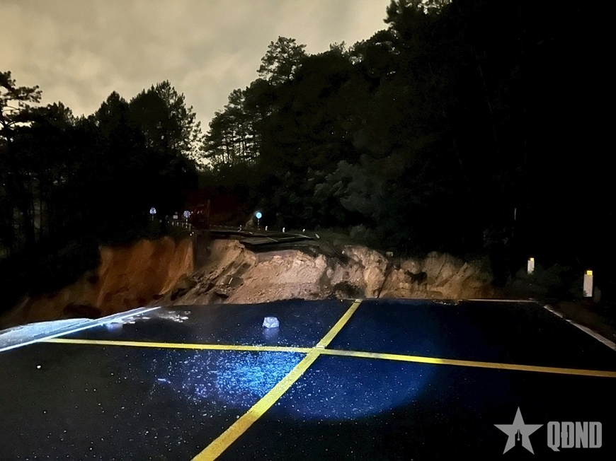 Tối 19-11, dù trời mưa lớn nhưng hàng chục cán bộ, chiến sĩ Bộ CHQS tỉnh Lâm Đồng vẫn đang hối hả cùng với các lực lượng tham gia khắc phục sạt lở trên đèo Mimosa nhằm giữ vững an toàn cho “mạch máu” giao thông của Đà Lạt.