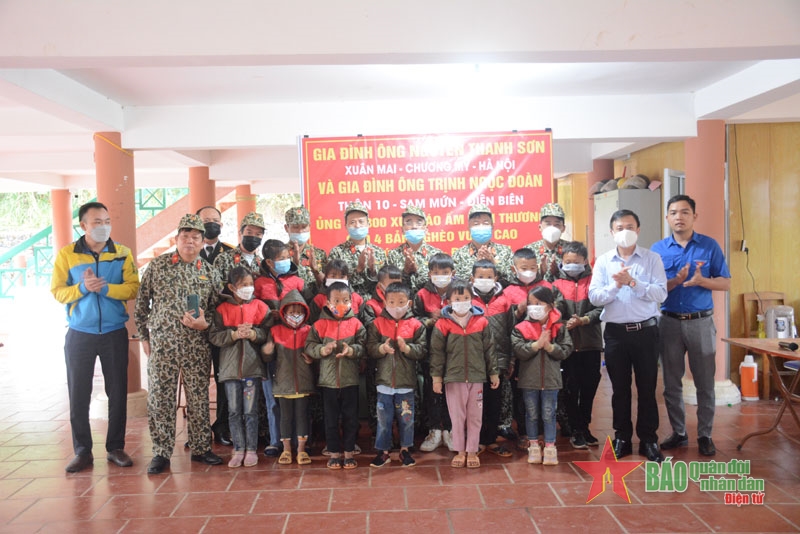 Theo đó, 300 phần quà là 300 chiếc áo ấm do gia đình Đại tá Nguyễn Thanh Sơn, Trưởng phòng Quân lực Binh chủng Đặc công và CCB Đặc công Trịnh Ngọc Đoàn (ở thôn 10, xã Sam Mứn, huyện Điện Biên) gửi tặng.