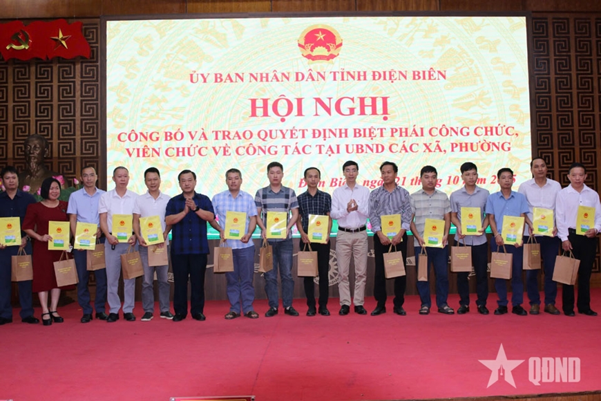 Tại hội nghị, Sở Nội vụ tỉnh Điện Biên đã công bố Quyết định số 2446/QĐ-UBND ngày 17-10-2025 của UBND tỉnh Điện Biên về việc phê duyệt danh sách công chức, viên chức biệt phái về công tác tại UBND các xã, phường. Theo quyết định, UBND tỉnh Điện Biên biệt phái 52 công chức, viên chức đang công tác tại các cơ quan chuyên môn, đơn vị sự nghiệp công lập thuộc UBND tỉnh làm việc tại các xã, phường trong thời gian 6 tháng, kể từ ngày 20-10-2025.