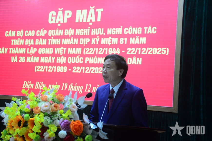 Phát biểu tại buổi gặp mặt, đồng chí Lê Văn Lương, Chủ tịch UBND tỉnh Điện Biên ghi nhận, biểu dương những đóng góp của đội ngũ cán bộ nghỉ hưu, nghỉ công tác, khi cùng Đảng bộ, chính quyền và nhân dân các dân tộc thực hiện thắng lợi các nhiệm vụ chính trị của tỉnh; đề nghị các đồng chí tiếp tục phát huy phẩm chất cao đẹp Bộ đội Cụ Hồ, nêu gương sáng về bản lĩnh chính trị, đạo đức, lối sống; vận động gia đình, nhân dân thực hiện tốt chủ trương, đường lối của Đảng, chính sách, pháp luật của Nhà nước; đồng thuận, ủng hộ và tham gia hiệu quả các chương trình, dự án phát triển kinh tế - xã hội, quốc phòng - an ninh của địa phương.