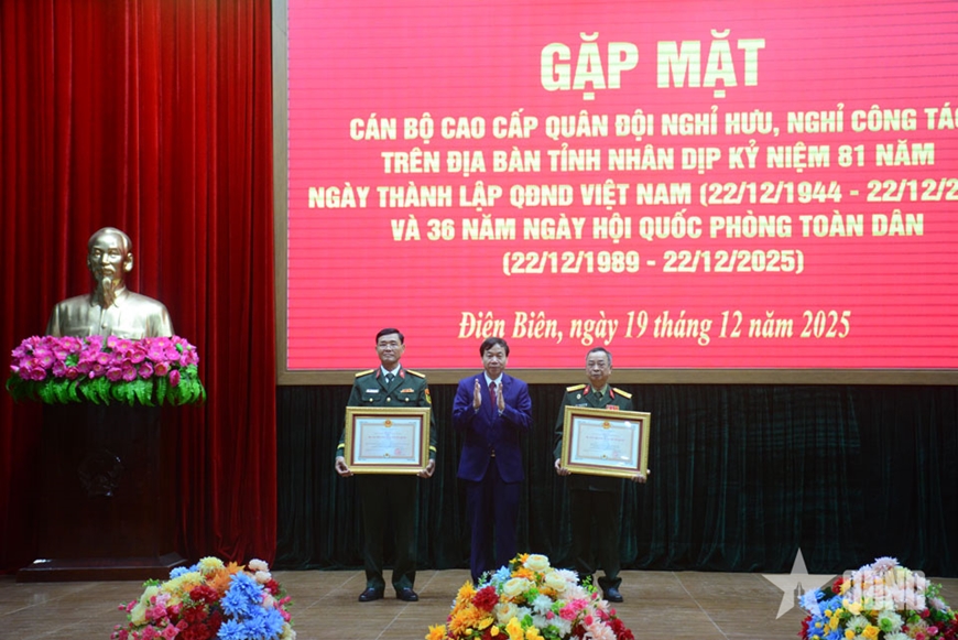 Đồng thời, nghe kết quả phát triển kinh tế - xã hội, củng cố quốc phòng - an ninh của tỉnh năm 2025. Phát huy truyền thống Quân đội nhân dân Việt Nam anh hùng, lực lượng vũ trang tỉnh Điện Biên luôn nêu cao tinh thần sẵn sàng chiến đấu, phối hợp với các lực lượng giữ vững chủ quyền an ninh biên giới quốc gia và sẵn sàng ứng phó với mọi tình huống. Xây dựng khu vực phòng thủ tỉnh, huyện vững chắc, kết hợp chặt chẽ, hiệu quả giữa kinh tế, văn hóa, xã hội gắn với quốc phòng, an ninh.