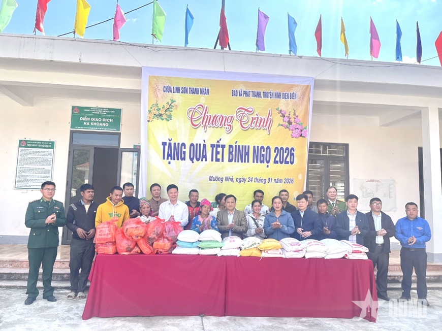 Ngày 24-1, Báo và Phát thanh, Truyền hình Điện Biên phối hợp với đoàn thiện nguyện chùa Linh Sơn - Thanh Nhàn, TP Hà Nội tổ chức chương trình trao quà Tết tặng hộ nghèo, gia đình có hoàn cảnh khó khăn, gia đình chính sách trên địa bàn các xã Thanh Nưa và Mường Nhà, tỉnh Điện Biên.