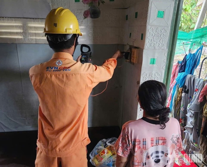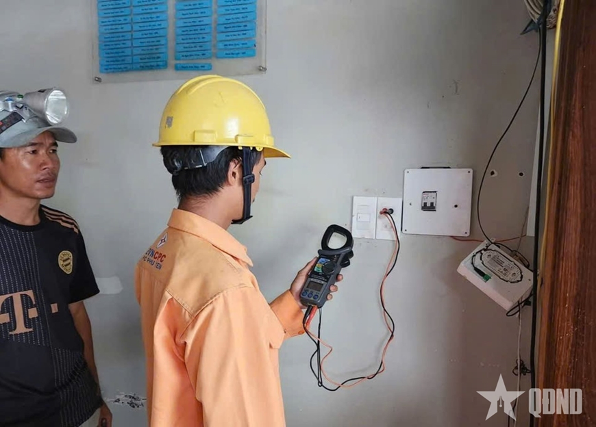 Nhân viên điện lực hỗ trợ người dân kiểm tra an toàn điện sau công tơ.