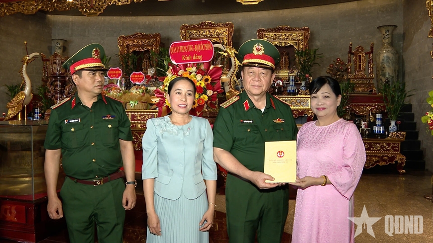 | Đoàn công tác Quân ủy Trung ương, Bộ Quốc phòng đến viếng Đền thờ Vua Hùng tại TP Cần Thơ. |