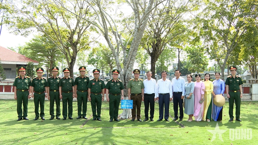 | Các đại biểu chụp ảnh tại cây xanh do Đại tướng Nguyễn Trọng Nghĩa tặng. |