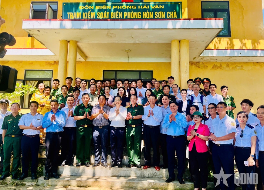 Đoàn công tác và cán bộ, chiến sĩ Trạm Kiểm soát Biên phòng Hòn Sơn Chà.