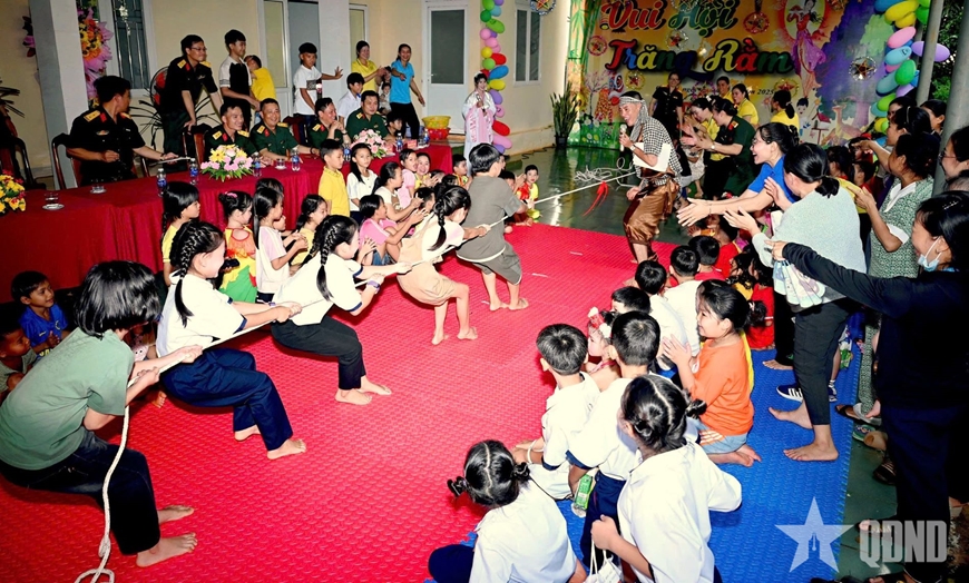 Chương trình "Vui hội Trăng rằm" của Đoàn KT-QP 715 tạo sân chơi sôi nổi cho các cháu. |