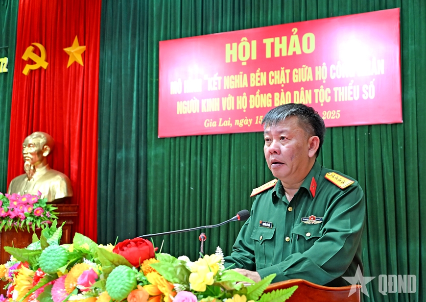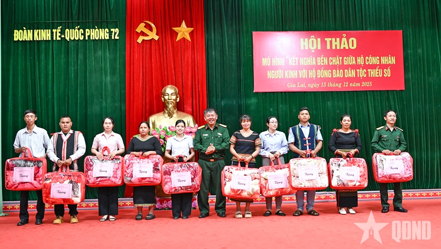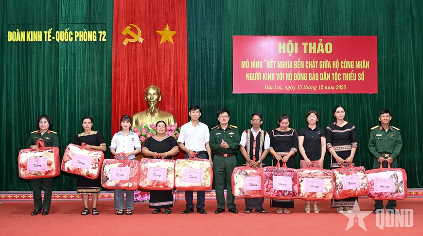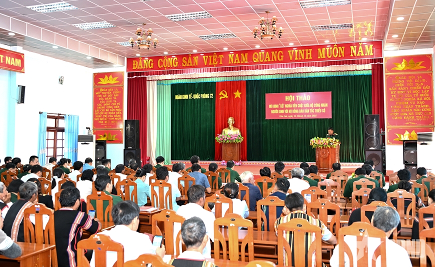 Cũng trong chiều 15-12, Đoàn KT-QP 72 tổ chức hội thảo mô hình “Kết nghĩa bền chặt giữa hộ công nhân người Kinh với hộ đồng bào dân tộc thiểu số” (gọi tắt là mô hình “Gắn kết hộ”). Đại tá Nguyễn Chí Kiên, Bí thư Đảng ủy, Phó đoàn trưởng Đoàn KT-QP 72 chủ trì hội thảo.