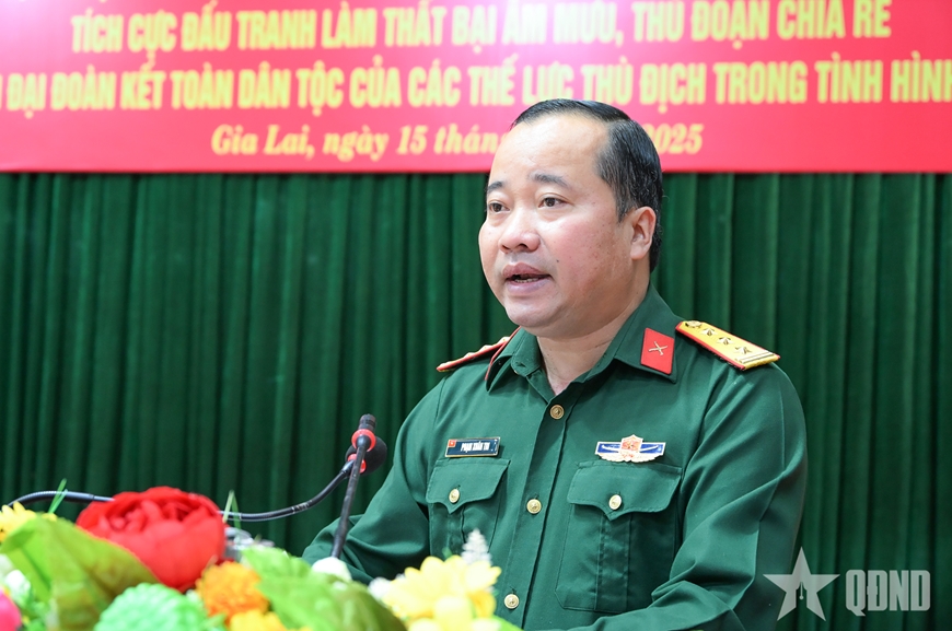 Đại tá Lưu Văn Đoàn, Phó chủ nhiệm Chính trị Binh đoàn 15 dự chỉ đạo. Các đồng chí: Thượng tá Phạm Xuân Tri, Đoàn trưởng Đoàn KT-QP 72; Nguyễn Trọng Quỳnh, Chủ tịch UBND xã Ia Nan; Nguyễn Huệ, Chủ tịch UBND xã Ia Pnôn (tỉnh Gia Lai) đồng chủ trì hội nghị.