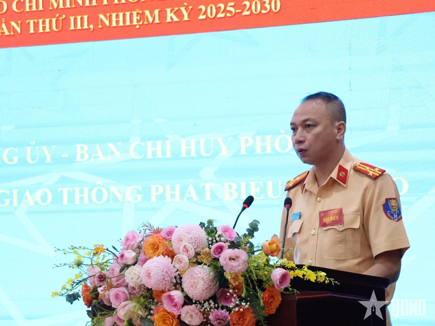 Thượng tá Nguyễn Chí Công, Phó trưởng Phòng CSGT Công an TP Hà Nội phát biểu tại đại hội.
