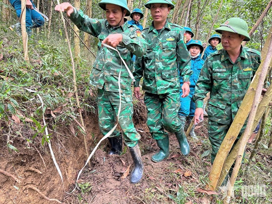 Đồn Biên phòng Đắc Pring (Bộ đội Biên phòng TP Đà Nẵng) kiểm tra vết nứt tại khu vực thôn 57 (xã Đắc Pring).
