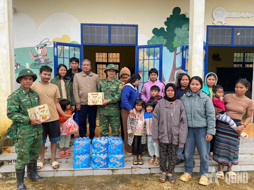 Đồn Biên phòng Ga Ry hỗ trợ nước, sữa cho bà con xã Hùng Sơn.