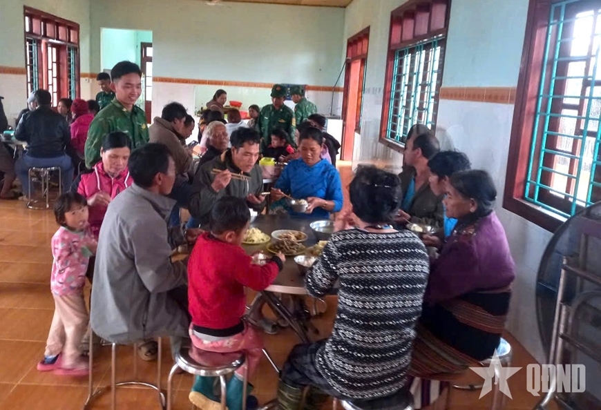 Bữa cơm của bà con xã Hùng Sơn được Đồn Biên phòng Ga Ry tổ chức.