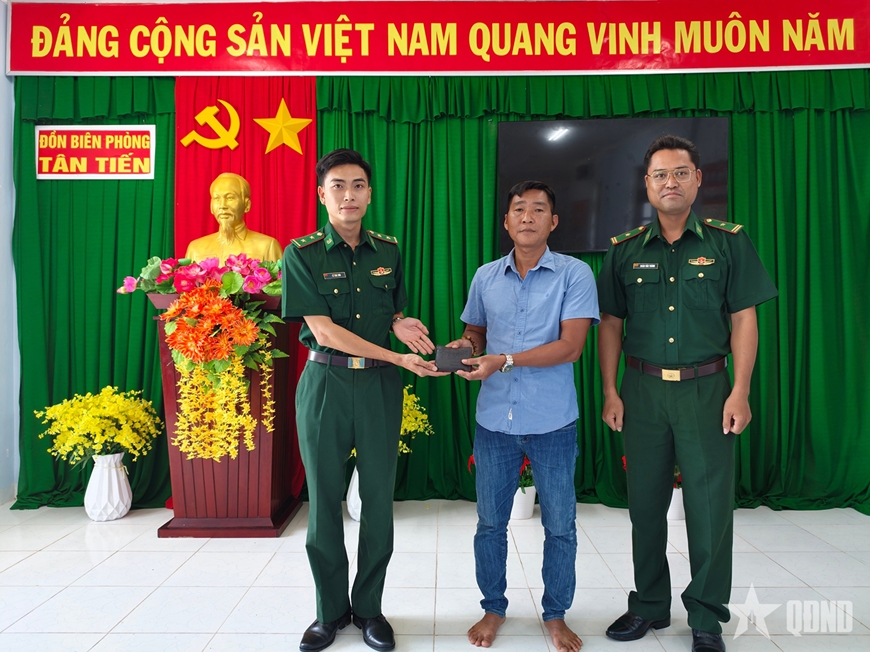 Đồn Biên phòng Tân Tiến trao lại chiếc ví bị đánh rơi cho anh Lê Văn Nghĩ có hộ khẩu thường trú tại ấp Bào Sen, xã Đầm Dơi, tỉnh Cà Mau.