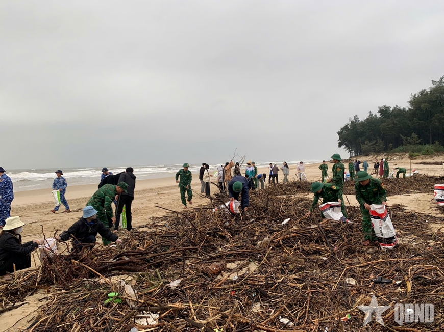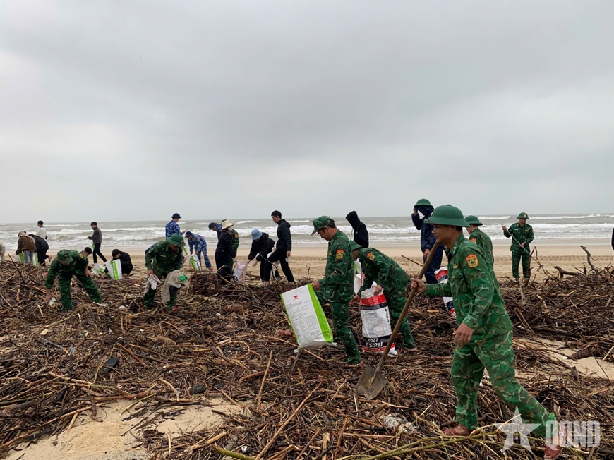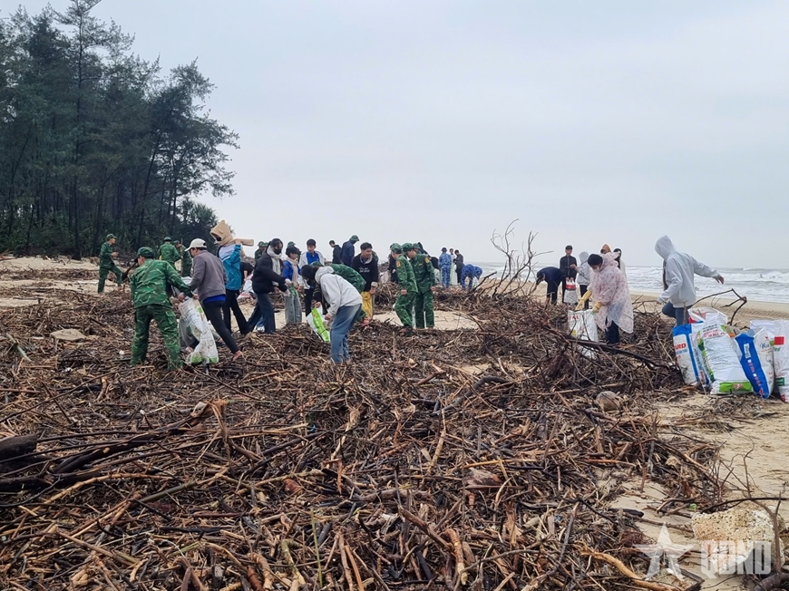 Trước tình hình đó, các lực lượng đã chủ động huy động lực lượng, phương tiện, dụng cụ vệ sinh môi trường để thu gom rác thải, làm sạch môi trường biển, trả lại cảnh quan cho khu vực. Trong “Ngày Chủ nhật xanh” hàng chục mét khối rác thải các loại đã được thu gom, vận chuyển đến điểm xử lý tập trung.