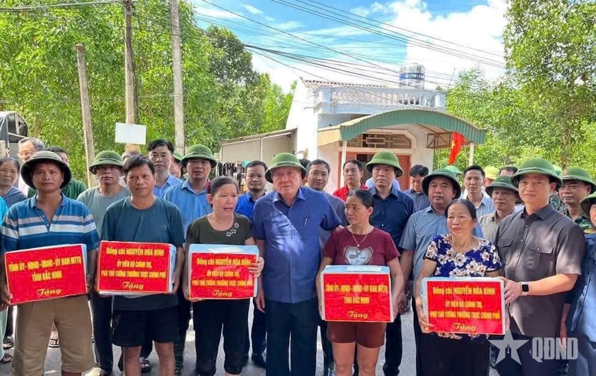 Phó thủ tướng Thường trực Chính phủ Nguyễn Hòa Bình thăm hỏi nhân dân Bắc Ninh bị ngập lụt.