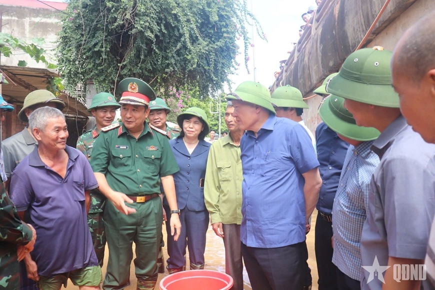 Cùng đi có các đồng chí: Trần Đức Thắng, Ủy viên Trung ương Đảng, Quyền Bộ trưởng Bộ Nông nghiệp và Môi trường; Thượng tướng Phùng Sĩ Tấn, Phó tổng Tham mưu trưởng Quân đội nhân dân Việt Nam.
