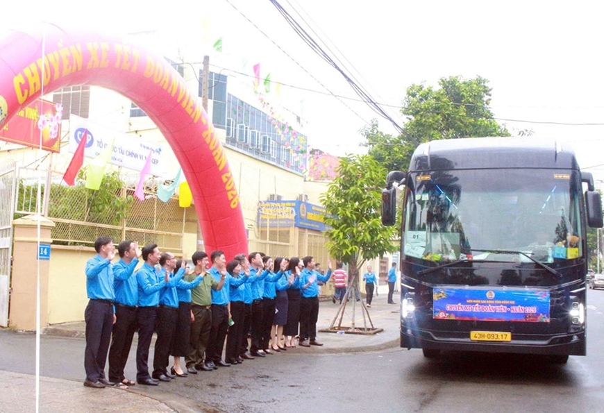 Theo báo cáo của Liên đoàn Lao động tỉnh, sau 4 ngày triển khai chương trình “Chuyến xe Công đoàn-Xuân 2026”, khởi hành từ ngày 11-2 (tức 24 tháng Chạp Âm lịch), đã có 72 chuyến xe lăn bánh, đưa gần 2,8 nghìn công nhân lao động có hoàn cảnh khó khăn trở về các tỉnh miền Trung, miền Bắc đón Tết cùng gia đình. Mỗi chuyến xe không chỉ bảo đảm an toàn, đúng lộ trình, mà còn chuyên chở niềm tin và sự ấm áp gửi gắm đến người lao động.