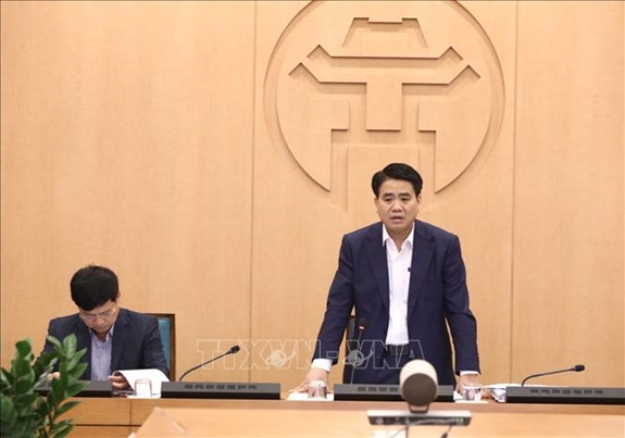 Chủ tịch UBND thành phố Hà Nội Nguyễn Đức Chung phát biểu chỉ đạo. Ảnh: TTXVN. |