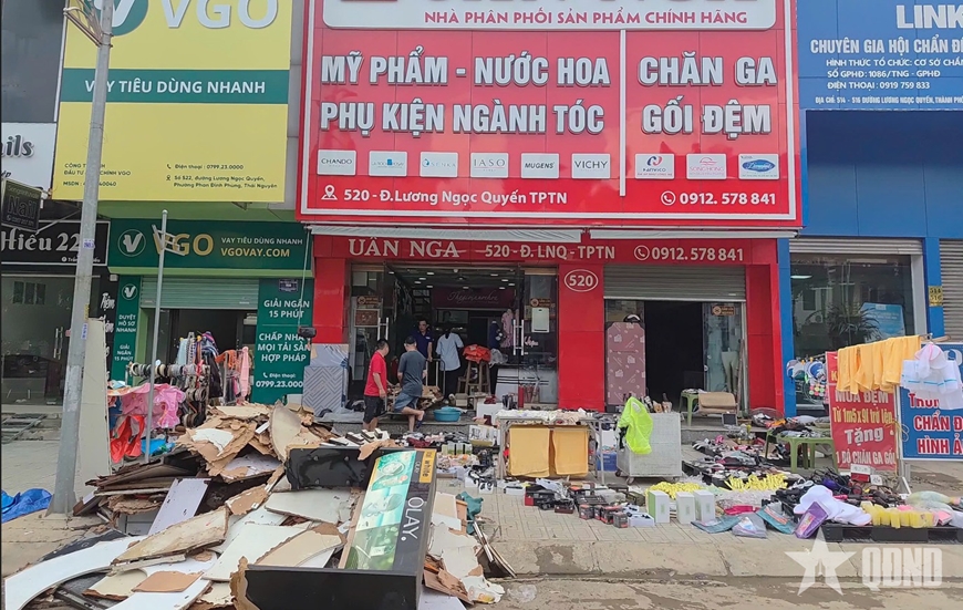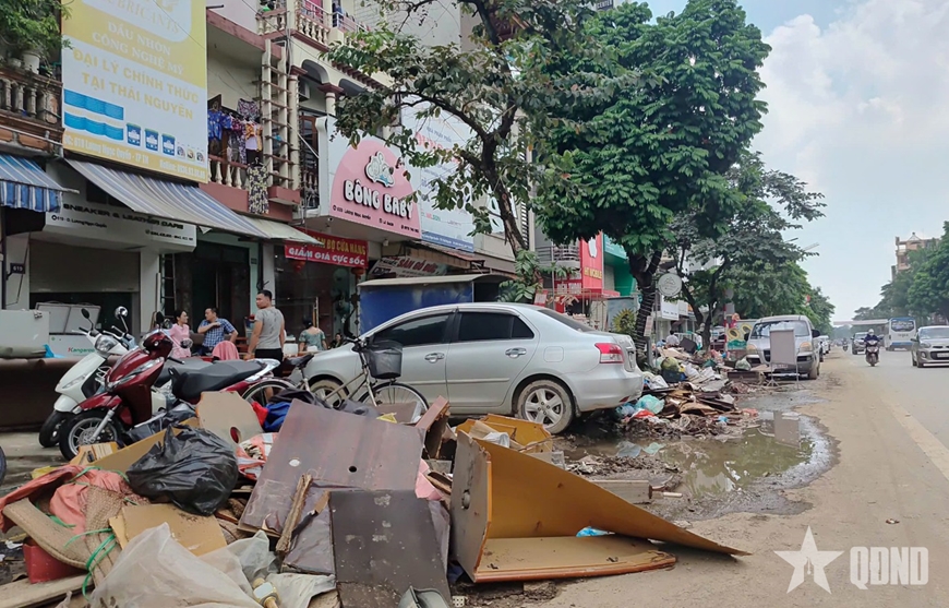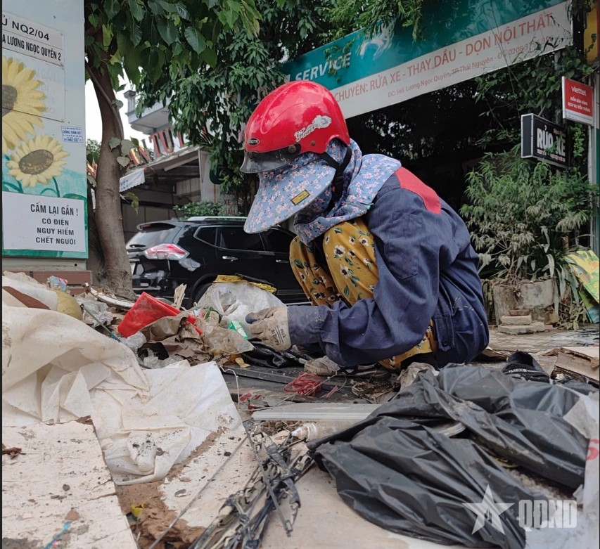Sau khi lũ rút, người dân phường Phan Đình Phùng, tỉnh Thái Nguyên tranh thủ dọn dẹp nhà cửa. Do chìm sâu trong nước lũ nhiều ngày nên nhiều đồ đạc, nhất là các thiết bị điện, điện tử gần như bị hư hỏng hết, khó có thể sửa chữa để tái sử dụng.