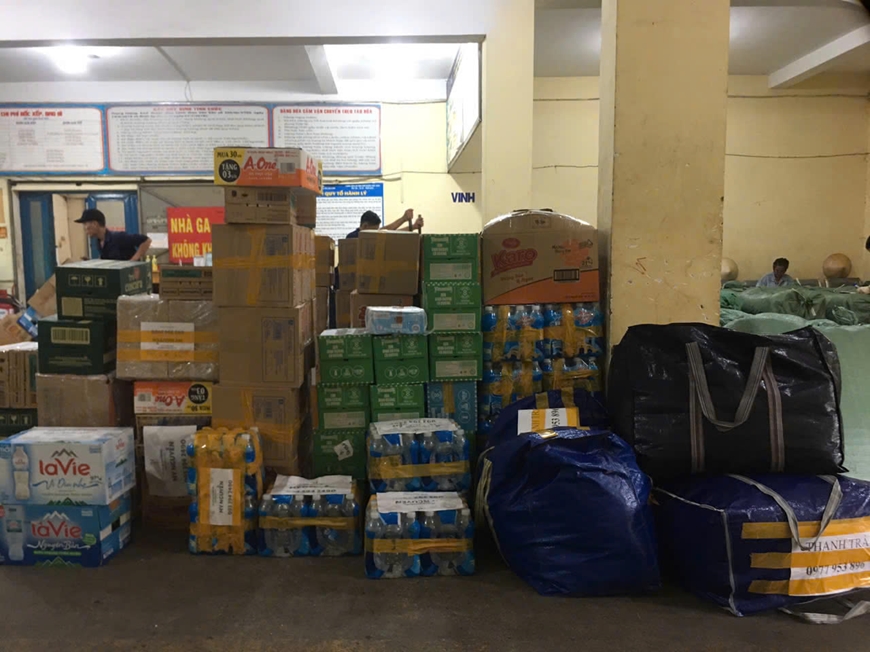 | Hàng hóa cứu trợ được tập kết tại nhà ga đường sắt để vận chuyển đến khu vực bị ảnh hưởng thiên tai. |