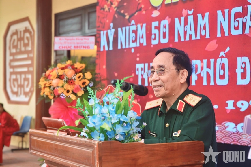 | Trung tướng Nguyễn Thanh Tuấn, nguyên Cục trưởng Cục Tuyên huấn (Tổng cục Chính trị Quân đội nhân dân Việt Nam), nguyên Mũi trưởng Biệt động quận Nhì phát biểu tại buổi gặp mặt. |