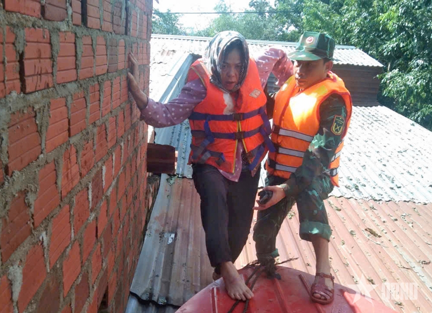 | Cứu người dân mắc kẹt trên mái nhà. |