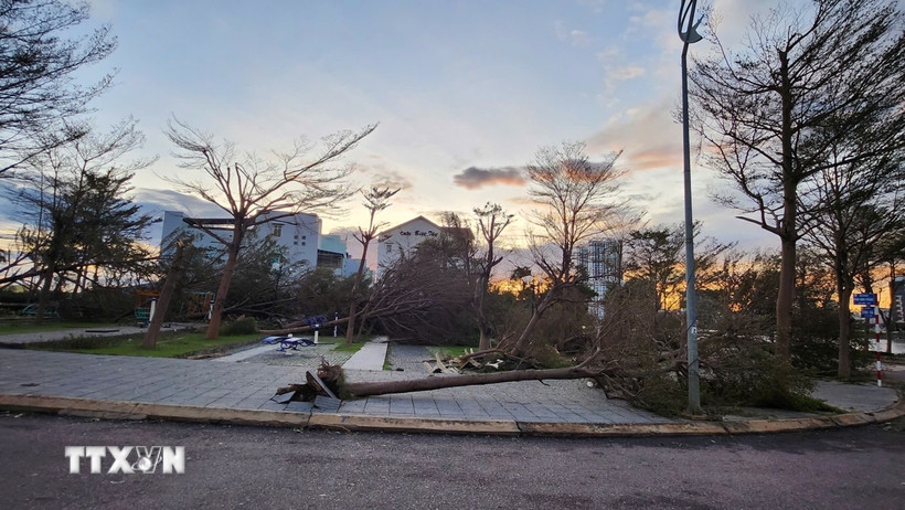 | Gió mạnh khiến cây xanh và trụ điện ngã đổ hàng loạt ở Gia Lai. |