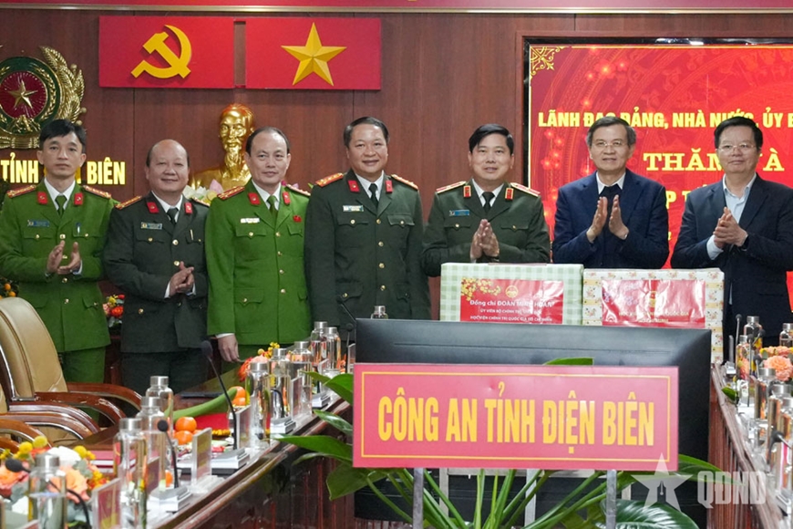 Đồng chí Đoàn Minh Huấn thăm, chúc tết cán bộ, chiến sĩ Công an tỉnh Điện Biên.