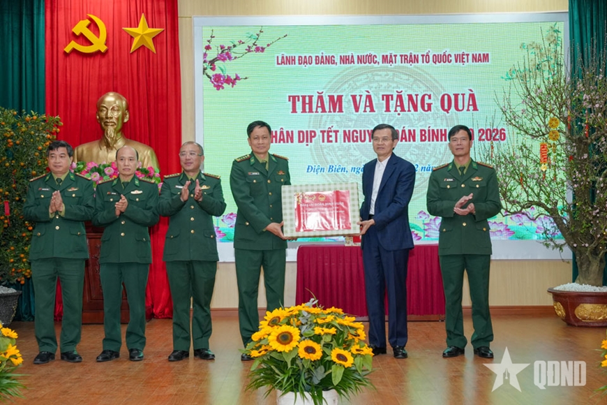 | Đồng chí Đoàn Minh Huấn thăm, chúc tết cán bộ, chiến sĩ Ban Chỉ huy Bộ đội Biên phòng tỉnh Điện Biên. |