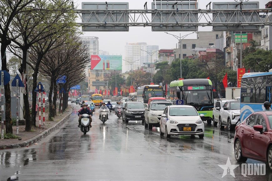Từ đầu giờ chiều, lưu lượng phương tiện trên các tuyến cửa ngõ như Pháp Vân - Cầu Giẽ, Quốc lộ 1A, Quốc lộ 5, Đại lộ Thăng Long, cầu Thanh Trì… tăng mạnh. Dòng xe ô tô cá nhân, xe khách liên tỉnh nối đuôi nhau hướng về trung tâm thành phố. Tại một số thời điểm, phương tiện di chuyển chậm do mật độ đông, cộng thêm thời tiết mưa khiến mặt đường trơn trượt.
