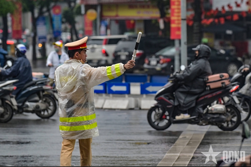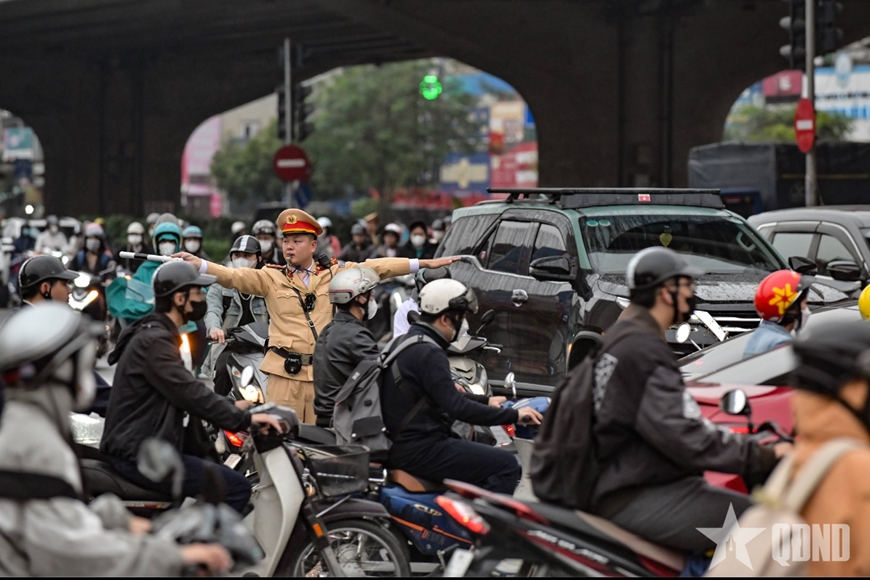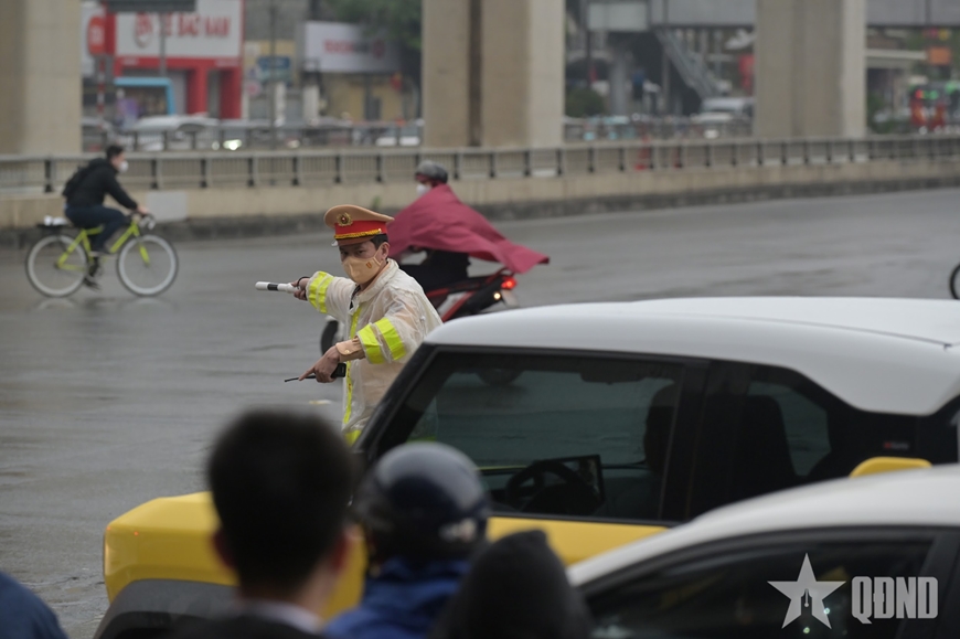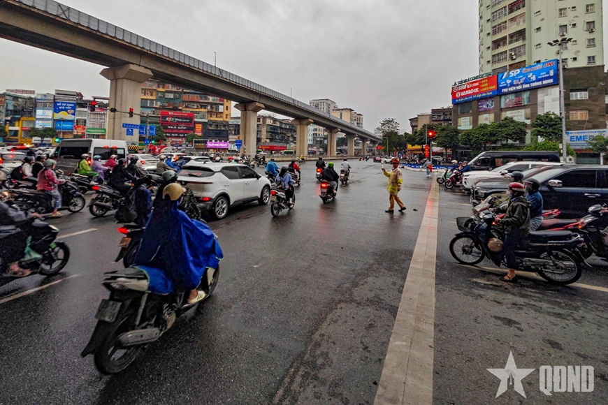 Đằng sau những dòng xe thông suốt là hình ảnh quen thuộc của những cán bộ CSGT vẫn bền bỉ bám đường trong mọi điều kiện thời tiết, âm thầm giữ nhịp giao thông cho Thủ đô.