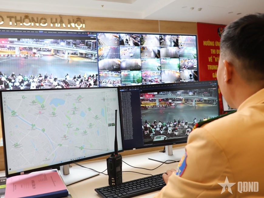Cùng với lực lượng làm nhiệm vụ trực tiếp ngoài hiện trường, Trung tâm Điều khiển giao thông (Phòng CSGT Công an TP Hà Nội) cũng tăng cường cán bộ trực, theo dõi sát tình hình qua hệ thống camera AI, kịp thời phát hiện, xử lý các tình huống phát sinh, hỗ trợ hiệu quả cho công tác chỉ huy, điều hành giao thông trên toàn thành phố.