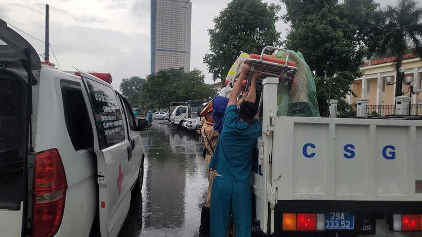 Tổ công tác CSGT đã lập tức báo cáo lãnh đạo và sử dụng xe chuyên dụng để chuyển bệnh nhi qua điểm ngập, tạo điều kiện cho phương tiện chở các cháu bé di chuyển nhanh chóng và an toàn đến bệnh viện.