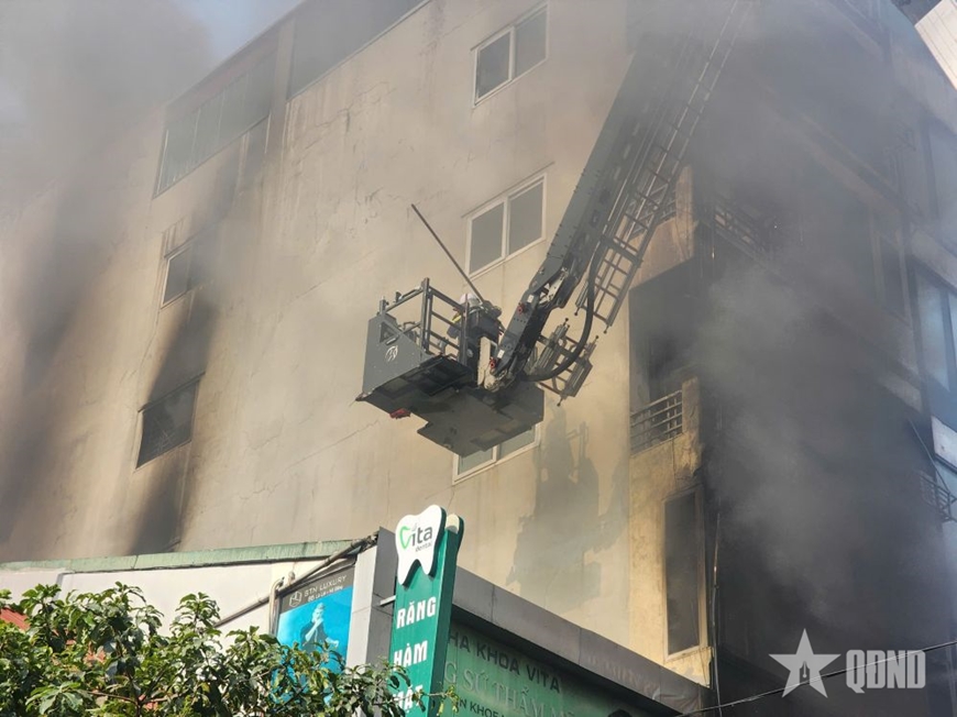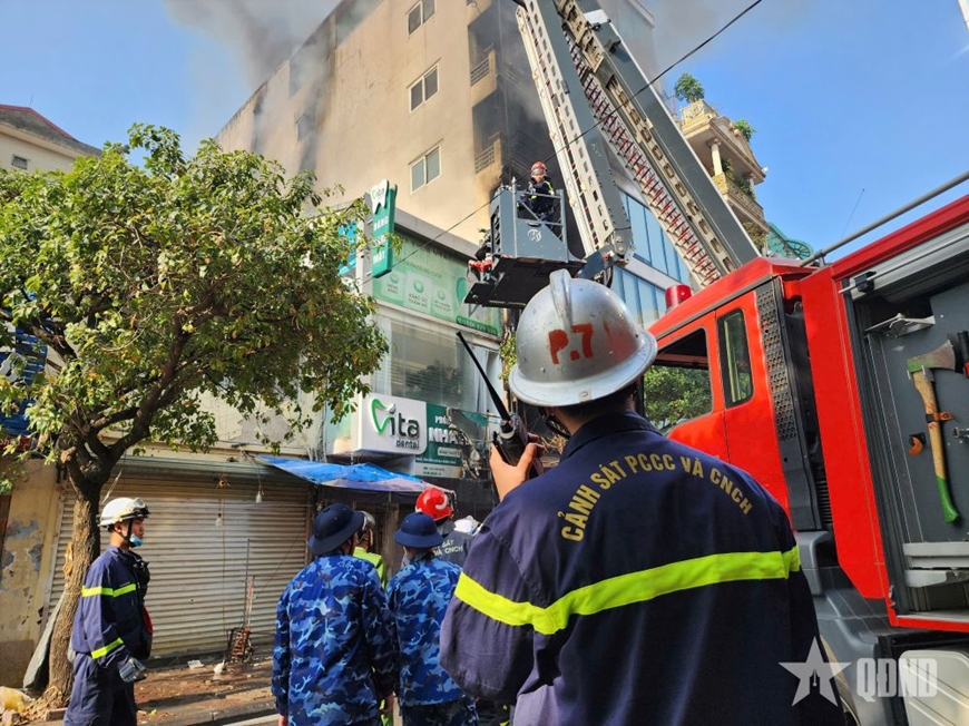 Nhận tin báo từ người dân, Trung tâm Thông tin chỉ huy Công an TP Hà Nội đã điều động Đội Chữa cháy và Cứu nạn, cứu hộ khu vực số 4 cử 2 xe thang và 4 xe chữa cháy cùng lực lượng chi viện từ các đội chữa cháy khu vực lân cận tới hiện trường chữa cháy. Cùng với đó, cán bộ, chiến sĩ thuộc Trung tâm Đào tạo và bồi dưỡng nghiệp vụ Cảnh sát biển Việt Nam ở gần hiện trường vụ cháy cũng tham gia phối hợp với lực lượng chức năng dập lửa.