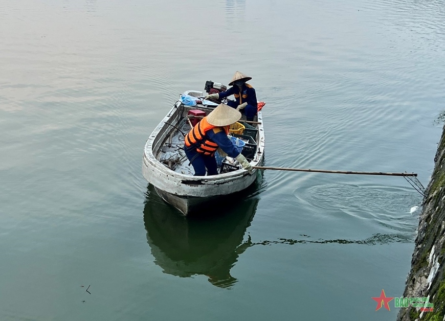 Công nhân được tăng cường để vớt cá chết ở hồ Tây. |