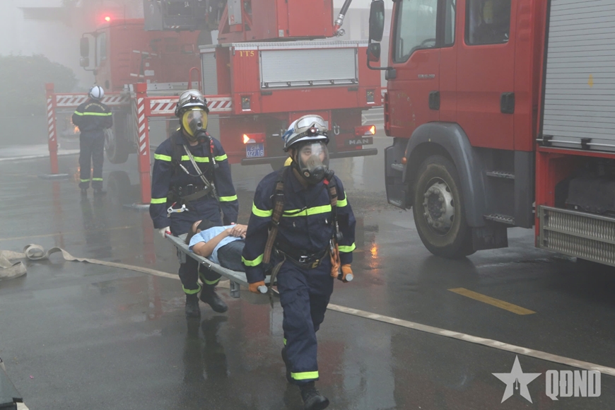 Toàn bộ hoạt động diễn tập diễn ra trong điều kiện mô phỏng sát thực tế, kiểm tra khả năng ứng phó của lực lượng cơ sở, đánh giá sự phối hợp giữa các lực lượng chuyên nghiệp khi xử lý tình huống cháy nổ tại chung cư cao tầng.