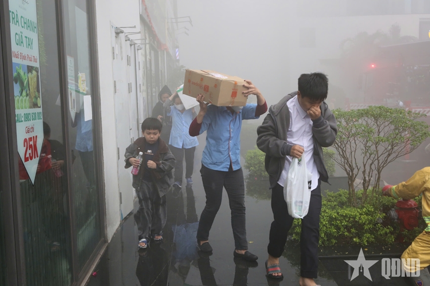 Các tổ kỹ thuật, tổ cứu người và tổ an ninh đồng loạt vào vị trí: Kiểm tra lối thoát hiểm, hỗ trợ sơ tán, thống kê người bị nạn, giữ ổn định trật tự khu vực.