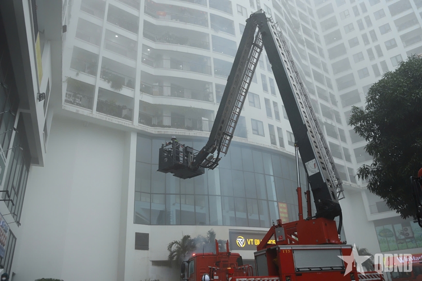 Ngay khi bảo vệ tòa nhà phát hiện cháy và kích hoạt báo động, lực lượng phòng cháy, chữa cháy cơ sở lập tức cắt điện khu vực cháy, phát loa hướng dẫn cư dân thoát nạn và triển khai bình chữa cháy cùng họng nước vách tường để khống chế lửa bước đầu.