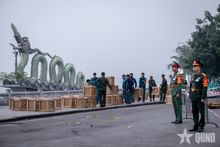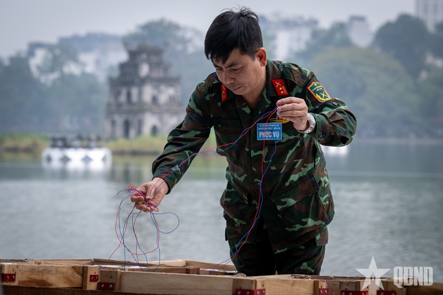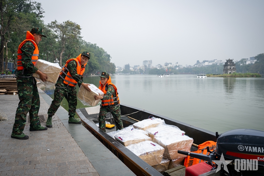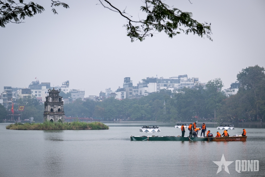 Để bảo đảm độ vững chắc, an toàn tuyệt đối cho các trận địa này, lực lượng công binh Bộ tư lệnh Thủ đô Hà Nội đã huy động 12 thuyền VSN- 1500 để tổ chức lắp ghép, neo giữ chắc chắn, đáp ứng yêu cầu kỹ thuật và an toàn trong điều kiện bắn pháo hoa trên mặt nước.