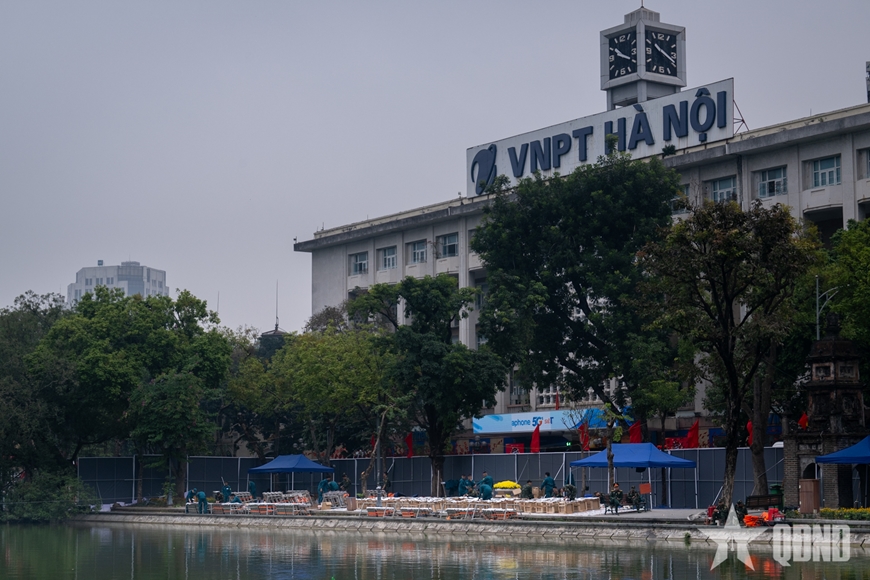 | Lực lượng Kiểm soát quân sự (Bộ tư lệnh Thủ đô Hà Nội) làm nhiệm vụ bảo vệ trận địa pháo hoa tại vườn hoa Lạc Long Quân. |