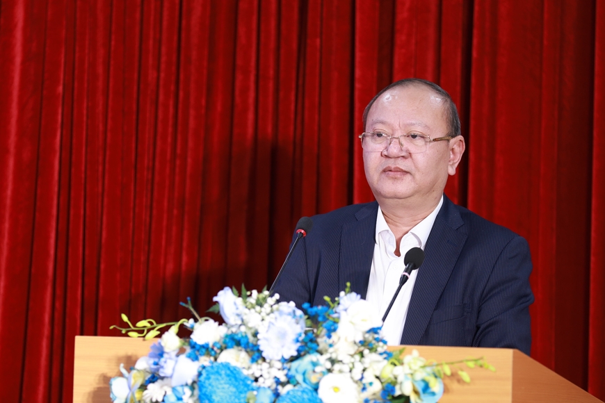 | TS Vũ Văn Tính, Học viện Hành chính và Quản trị công chia sẻ tại hội thảo. |