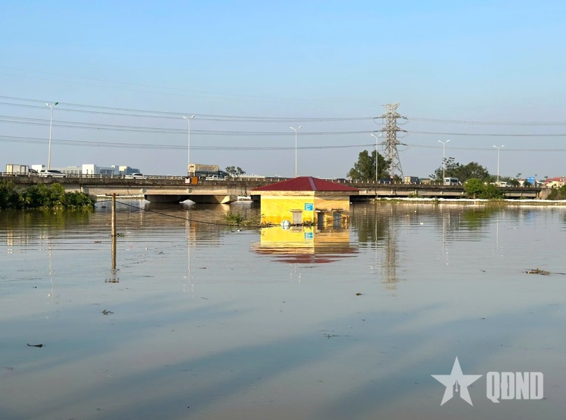 Chiều nay (10-10), nhiều khu vực thuộc xã Đa Phúc (TP Hà Nội) vẫn bị ngập sâu trong biển nước.