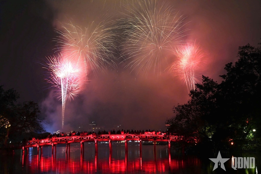 Đúng 0 giờ ngày 17-2 (tức Mồng 1 Tết Bính Ngọ), bầu trời Hà Nội rực rỡ trong bữa tiệc ánh sáng của những màn pháo hoa tầm cao mở màn cho một năm mới tràn đầy năng lượng. Trong khoảnh khắc Giao thừa thiêng liêng, hàng vạn người dân Thủ đô đã cùng cầu chúc cho một năm mới thành công.