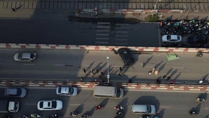 Nhận được tin báo, lực lượng Cảnh sát giao thông (Công an TP Hà Nội) có mặt tại hiện trường, phối hợp với công an cơ sở tổ chức khám nghiệm, điều tra nguyên nhân vụ việc, đồng thời phân luồng, hướng dẫn các phương tiện di chuyển qua khu vực cầu vượt Ngã Tư Vọng.