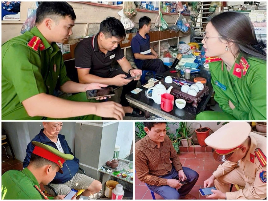 Các tổ công tác gồm Cảnh sát giao thông, cảnh sát khu vực đến từng địa bàn hỗ trợ, hướng dẫn nhân dân khai báo, làm sạch dữ liệu.