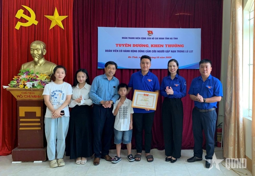 Sáng 5-10, đồng chí Nguyễn Ny Hương, Tỉnh ủy viên, Phó chủ tịch Ủy ban MTTQ Việt Nam tỉnh, Ủy viên Ban Thường vụ Trung ương Đoàn, Bí thư Tỉnh đoàn Hà Tĩnh đã trao Bằng khen cho anh Hồ Quốc Hiệu (sinh năm 2000), đoàn viên thôn Vọng Sơn (xã Hương Sơn) vì hành động dũng cảm cứu em bé 7 tuổi thoát khỏi dòng nước lũ.