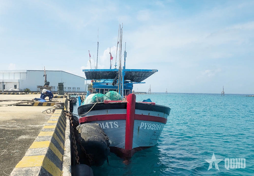 | Tàu cá neo đậu tại âu tàu đảo Trường Sa. |