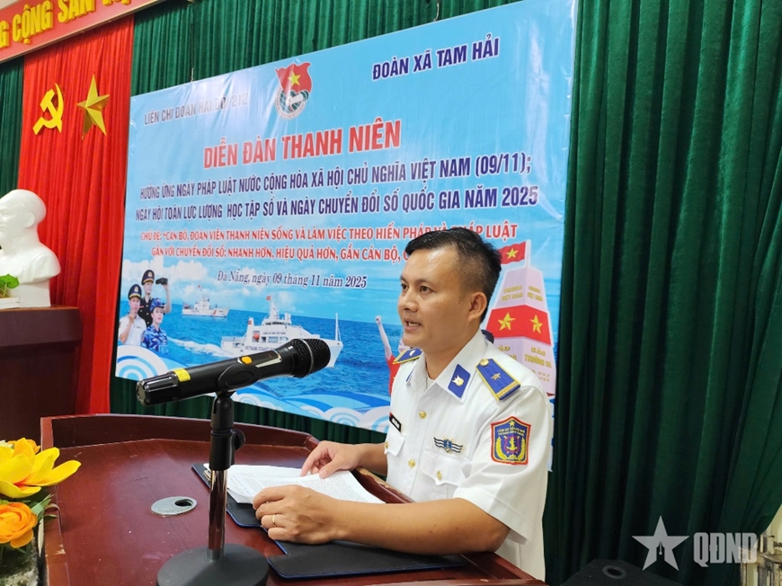 Diễn đàn có chủ đề “Cán bộ, đoàn viên thanh niên sống và làm việc theo hiến pháp và pháp luật gắn với chuyển đổi số: Nhanh hơn, hiệu quả hơn, gần cán bộ, chiến sĩ hơn”. Tham dự diễn đàn có đại diện cơ quan chính trị Hải đoàn cùng hơn 50 cán bộ, chiến sĩ, đoàn viên thanh niên Hải đội và các đoàn viên, thanh niên xã Tam Hải.