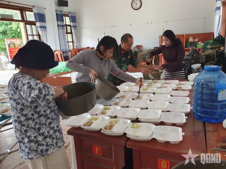 Hơn 2 ngày qua, gần 3.000 suất cơm được cấp phát đến người dân vùng lũ.